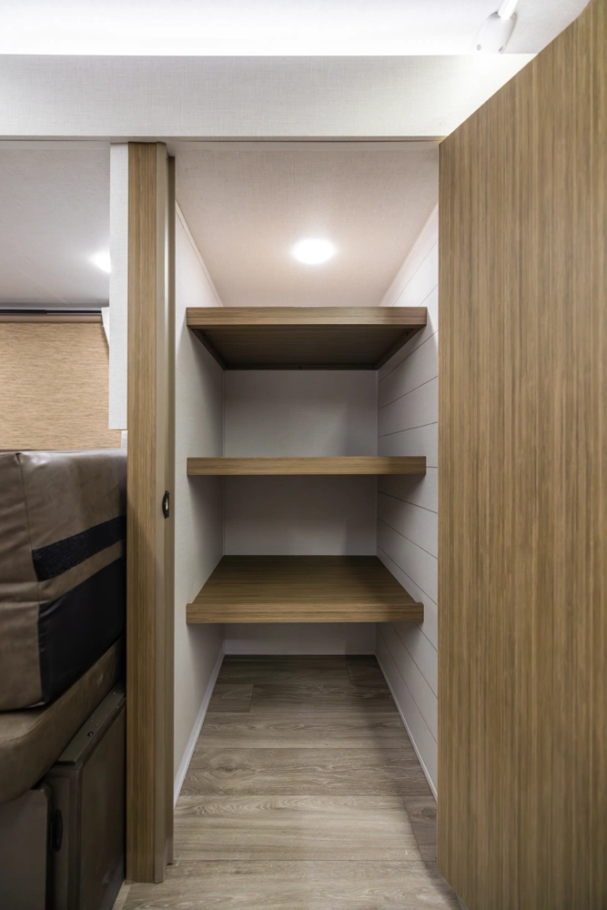 The 240BHXL weighs in at less than 6,000 lbs. for increased towability, without sacrificing any of the comfort! This double-over-double bunkhouse packs a lot of features into its 28'10” length, including a large comfy booth dinette with panoramic windows, walk-in pantry, modern kitchen with stove, cooktop, microwave, and an oversized refrigerator! The bathroom provides a walk-in shower with skylight and a convenient second door to the outside.