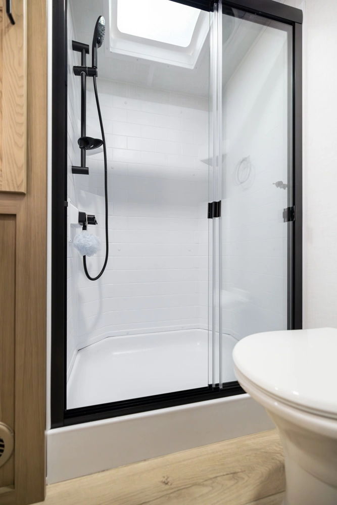 This under-30’ fifth wheel packs luxury into a compact design! Enjoy a spacious living area with a 67" theater seat, 44" dinette, and entertainment center with TV. The kitchen offers a pantry, fridge, and plenty of counter space, while the private front bedroom includes a queen bed (king optional) and wardrobe storage. With a roomy bathroom, pass-thru storage, and a 20' awning, it’s the perfect blend of comfort and easy towing.