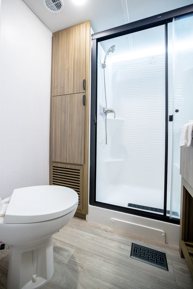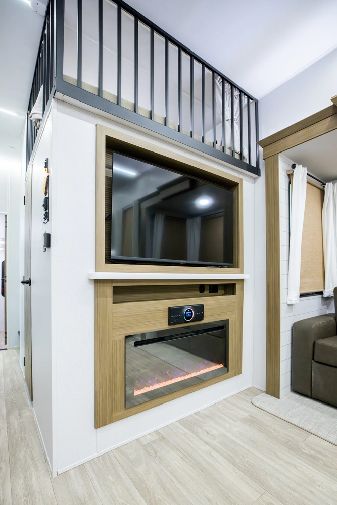The Wildwood Grand Lodge 42FK is a truly exceptional destination trailer. The large front kitchen is equipped with residential appliances, tons of cabinet and pantry space, and a free-standing dinette. The large living area provides two sofas and an entertainment center with TV and fireplace, while the large rear master bedroom offers a full wardrobe and dresser. The HUGE walk-up loft is perfect for friends and family, with four separate bunks and plenty of space to stretch out.