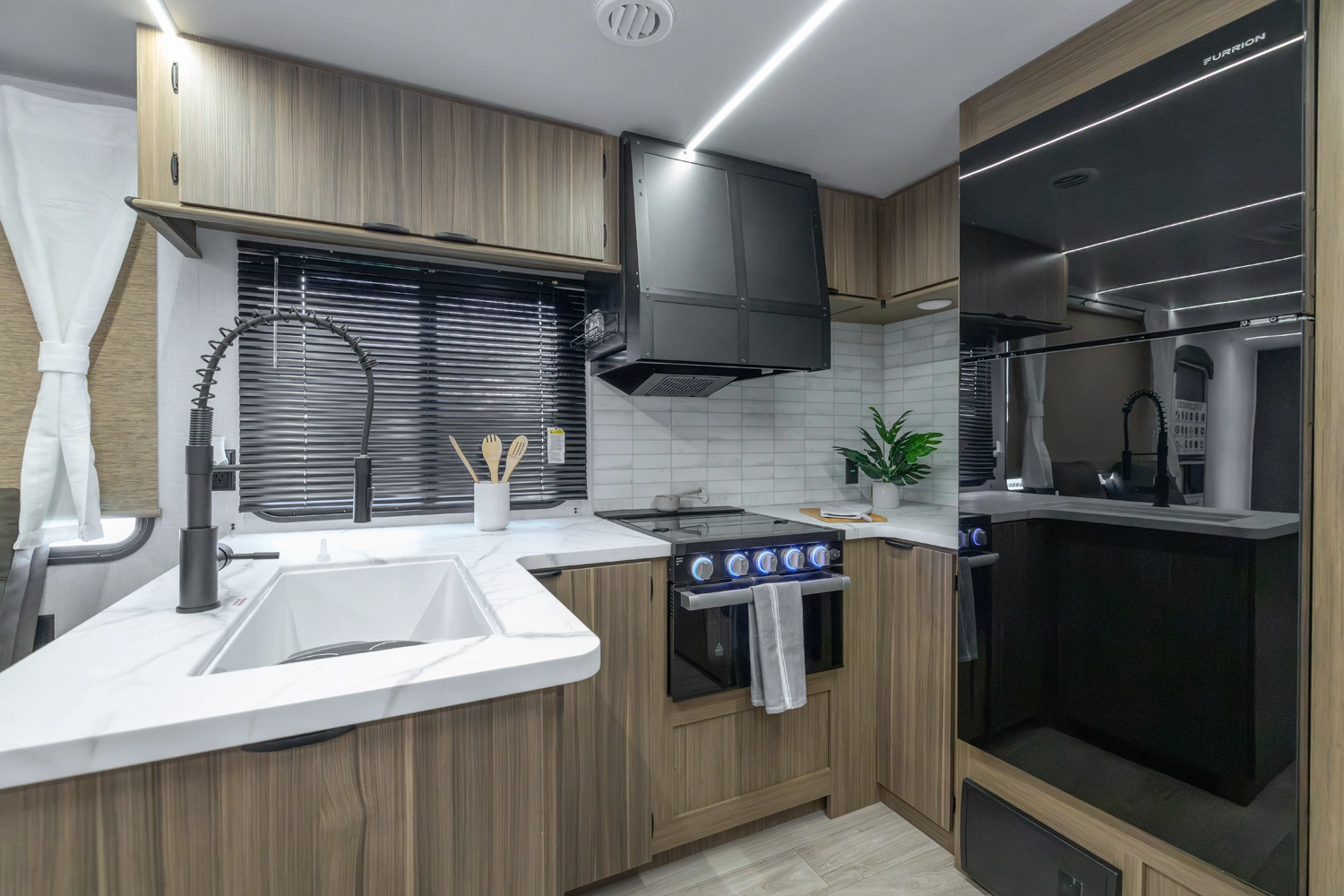 The 27RK stands out with its spacious kitchen and panoramic campsite windows. You will love the Versa-Lounge, which can reconfigure and customize according to your needs—and conveniently below is the Stow N Go Storage! This model also provides a fireplace (heater) and 11 CU. FT. refrigerator making you feel right at home.